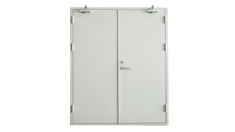 門框、門扇采用優質冷軋鋼板、鍍鋅板或不銹鋼板成型,內灌填不燃性環保耐火材料,表面采用靜電噴塑處理,配套五金為:防火鎖(或管井鎖)、防火鉸鏈,防火閉門器、 順序器等,門組件滿足相應耐火完整性和隔熱性。