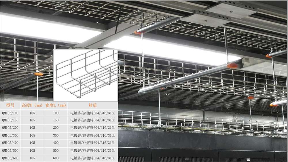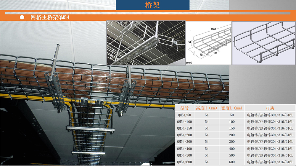 2. 經 久 耐 用、安 全 牢 固 。網格電纜橋架是 由 高 品 質 的 鋼 絲 焊 接 而 成,除了電鍍鋅和熱鍍鋅的表面處理,網格橋架和附件還提供高品質經去污處理的304L和316L不銹鋼系列,經鹽霧測試后表面,其使用壽命是未經處理的不銹鋼的三到四倍,即使在嚴苛的環境下也能保證長期的耐用性。而且線路和設備的檢修非常快速安全。